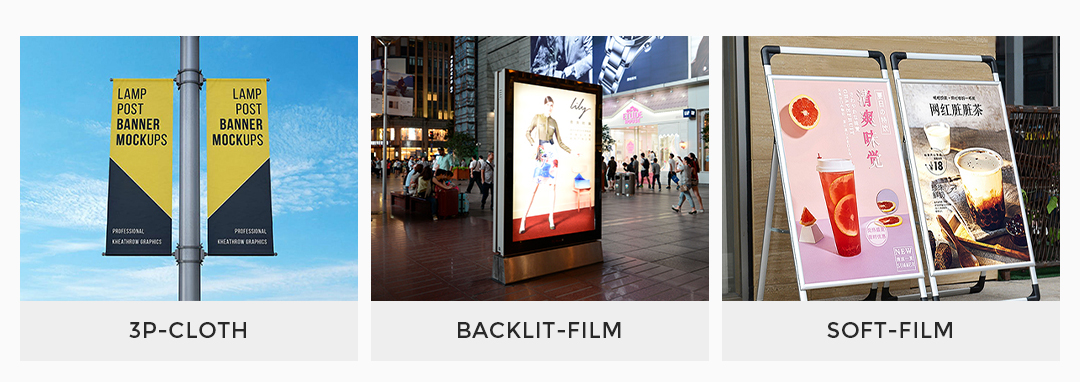 | Printing Materials | any Soft Materials such as Soft Film, Backlit Film, Car Sticker, 3P Cloth, Coated Banner, Canvas, Light bBox Cloth, one way Vision Sticker. | |||