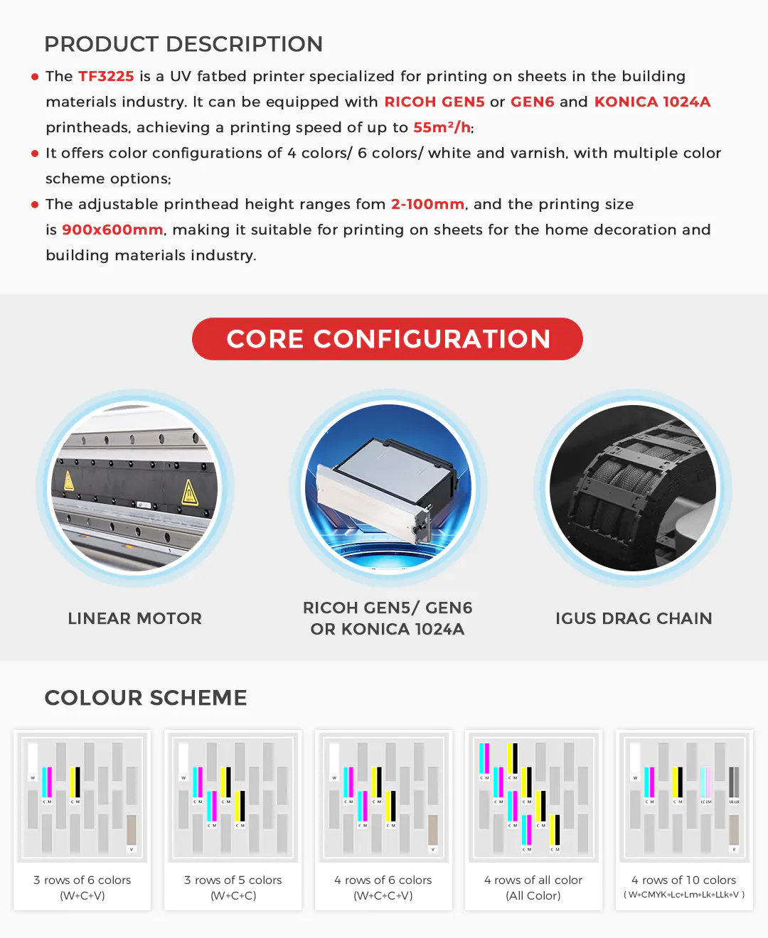 | Print Head | RICOH GEN6-5PL | KONICA 1024A-6PL | KONICA 9888H-5PL | |||||||||||||||