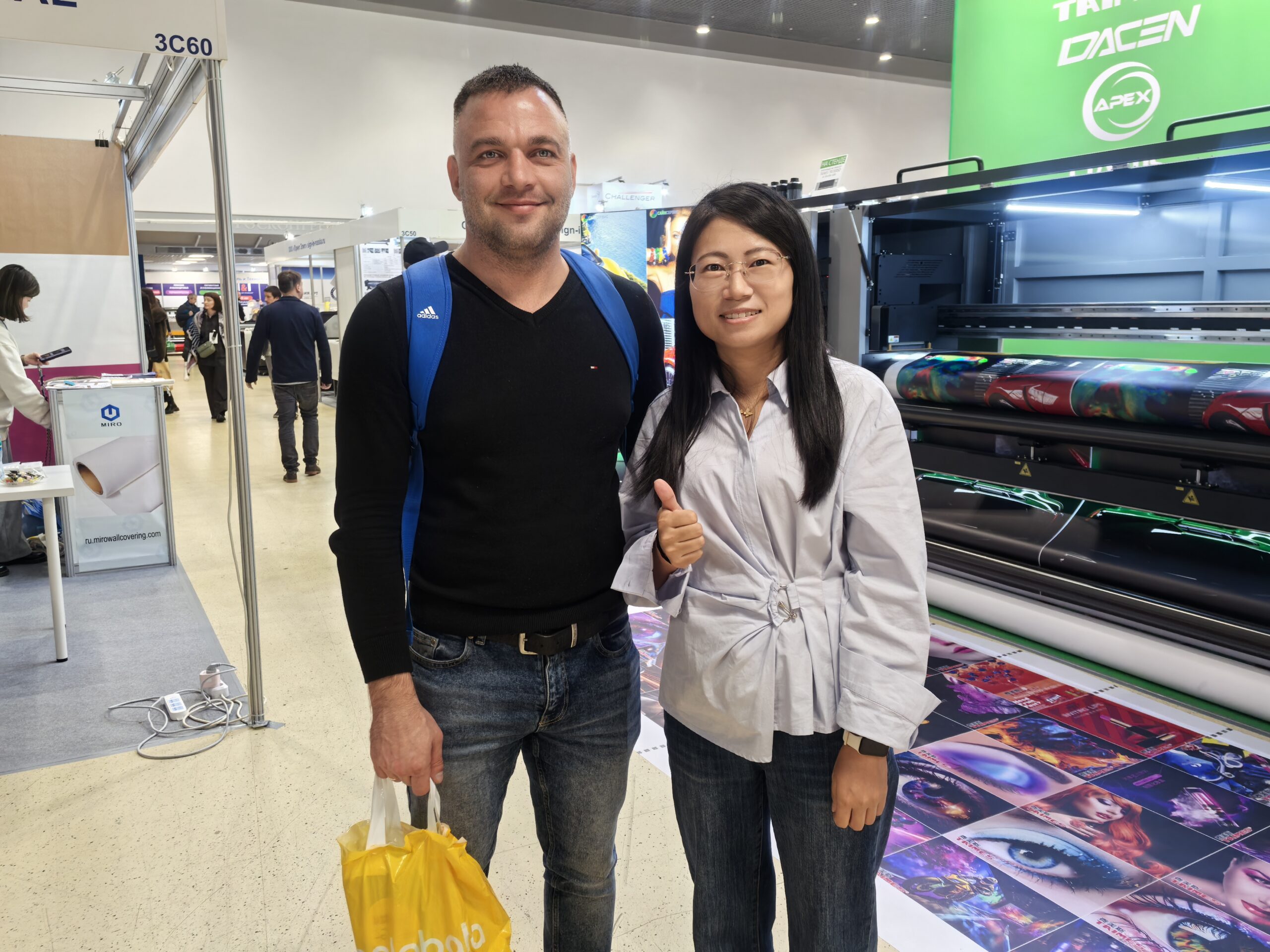The TF3220 UV平板机作为多面手,现场演示了从3mm超薄板材到150mm立体物件的无缝打印切换。搭载 新一代智能负压吸附系统和多维度白彩同出技术,不仅实现瓷砖、木板等传统材料的精细打印,更在手机壳、文创礼品等小批量定制领域展现惊人潜力,其模块化设计理念赢得欧洲客户的连连称赞。