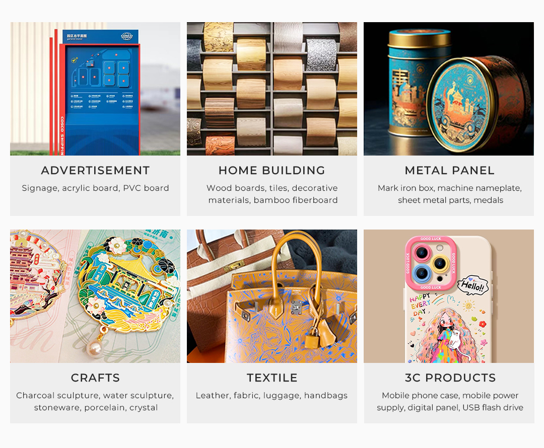 | 介质类型 | 木板、铝板、门板、硬纸板、PVC发泡板、屋顶板、玻璃、陶瓷、亚克力、PVC等 | |||||||||||||||||